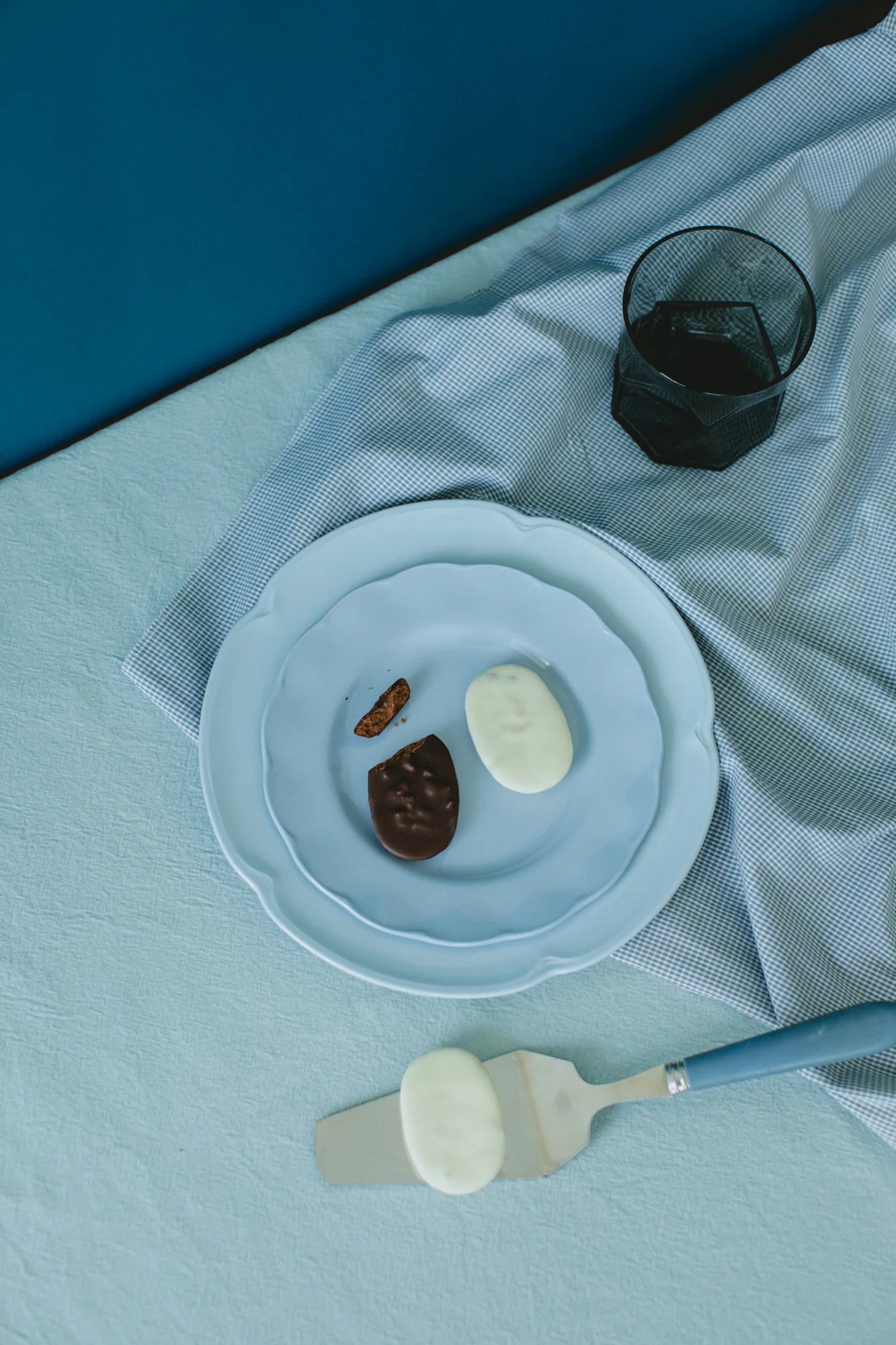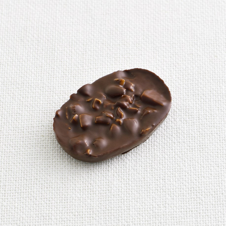 在朱古力口味的酥餅上,放上整顆鹽烤杏仁,再淋上52% 濃度的特製黑朱古力。微苦的黑朱古力與帶有鹽味的杏仁完美平衡,口感香脆濃郁。