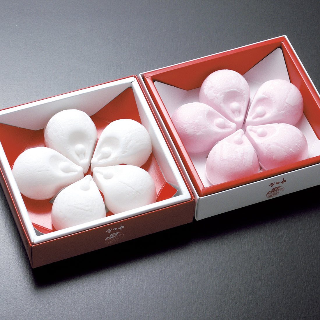- 花瓣最中 (10個):含紅色 5 個、白色 5 個。造型如花瓣般優雅,內餡綿密。