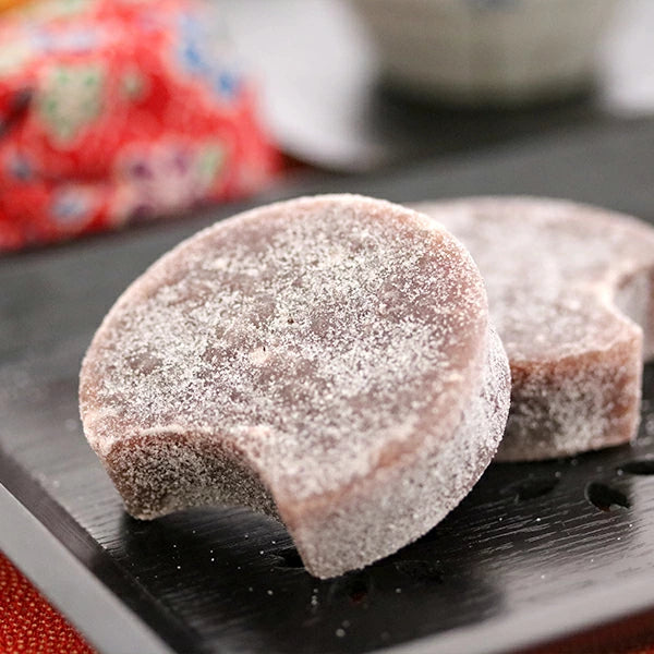 使用特選的大和芋(山藥)製作外皮,蒸製後散發淡淡的自然薯香。內餡是去皮紅豆製成的淡紫色豆沙,口感綿密細緻,與淡雅的麵皮完美融合。