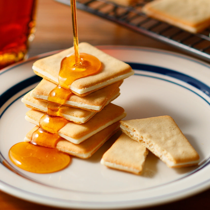 兩片楓糖曲奇中間,夾著一層特製的「牛油風味朱古力」。牛油的鹹香與楓糖的甘甜在口中完美融合,甜而不膩,讓人一片接一片停不下來。