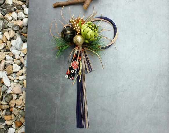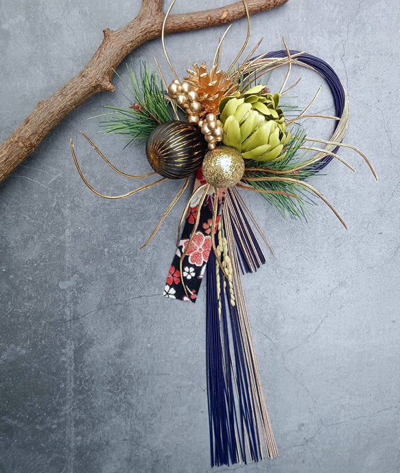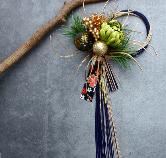 新年水引/注連繩象徵迎接「年神大人」,掛於玄關被視為納福迎新的儀式,祈願新的一年平安順遂。同時也具有 無病息災|交通安全|生意興隆 的祈福意涵。