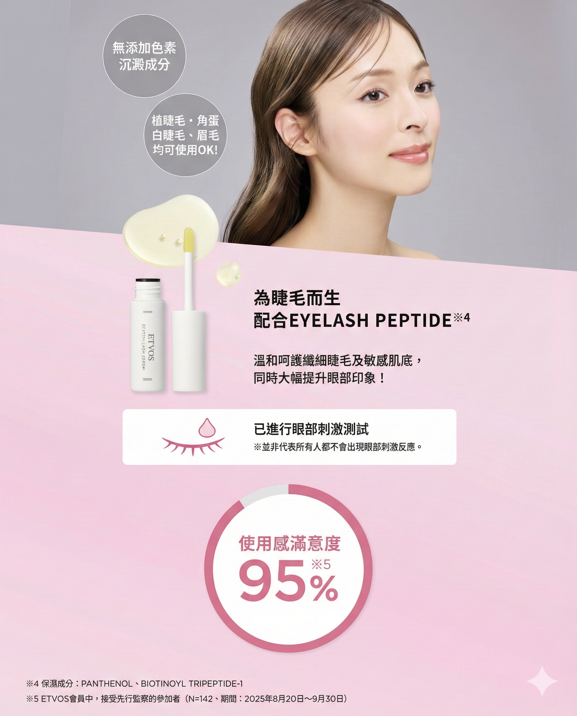 - 全方位護理:不僅滋養睫毛,更能調理睫毛根部肌膚環境,改善因乾燥引起的眼部暗沉。