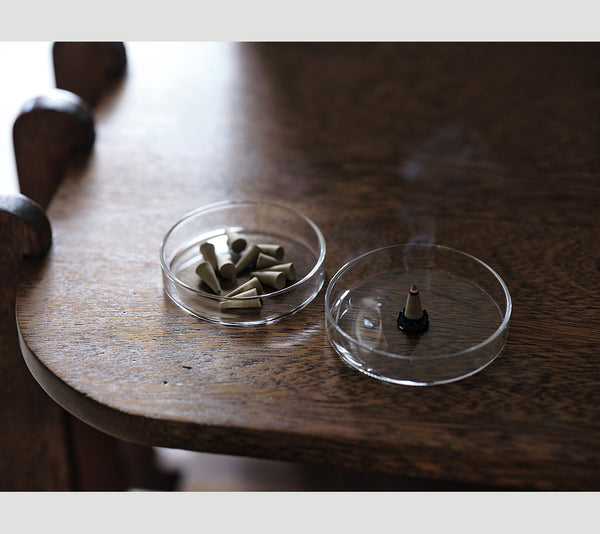材質:檜木粉(線香)/玻璃(香皿・收納盒)
