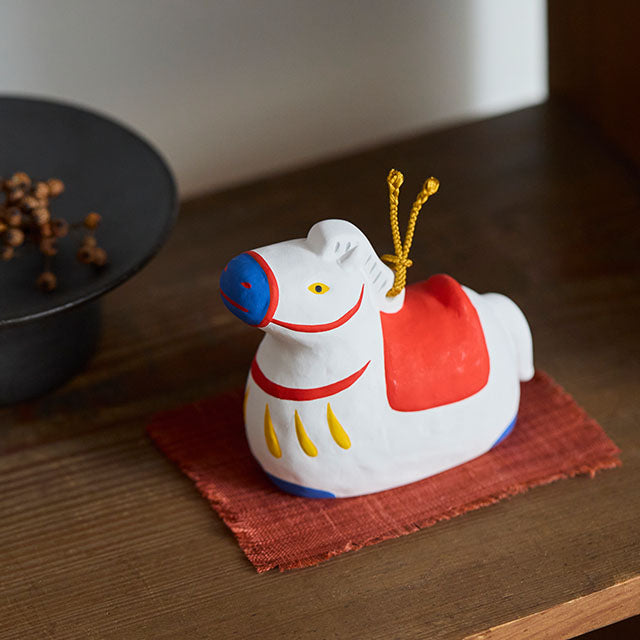 以愛知縣瀨戶市的陶磁器工房「瀨戶陶藝社」手工製作,這款干支「午(馬)」鈴飾象徵生命力、健康與發展。馬自古支撐農耕與交通,被視為「幸福順遂、好運奔馳而來」的吉祥象徵,也因其讀音「うま(UMa)」常被寄予「うまくいく(順利成功)」的寓意。