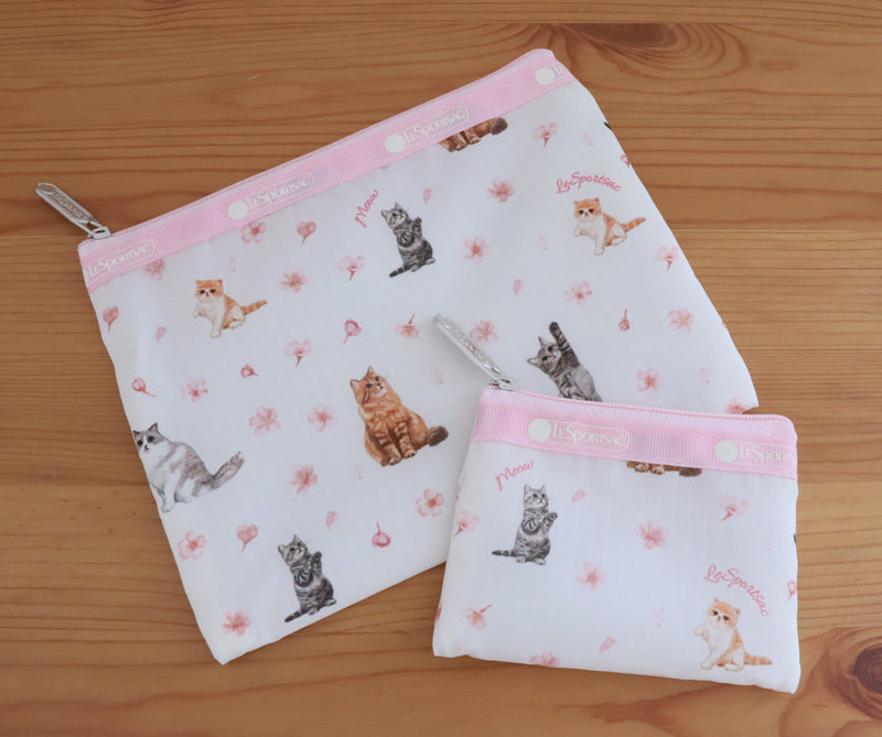 超人氣聯乘系列第 5 彈!充滿春日氣息的櫻花與可愛貓咪圖案設計。包含兩個實用尺寸,完美收納各類小物: