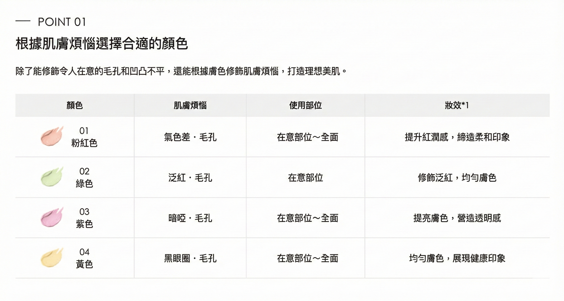 - 輕薄貼服遮瑕,毛孔與細紋修飾自然。