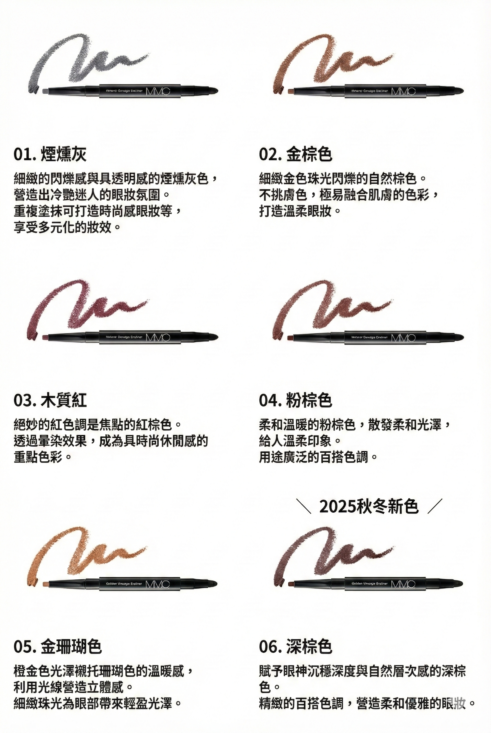 賦予眼神沉穩深度與自然層次感的深棕色。精緻的百搭色調,營造柔和優雅的眼妝。