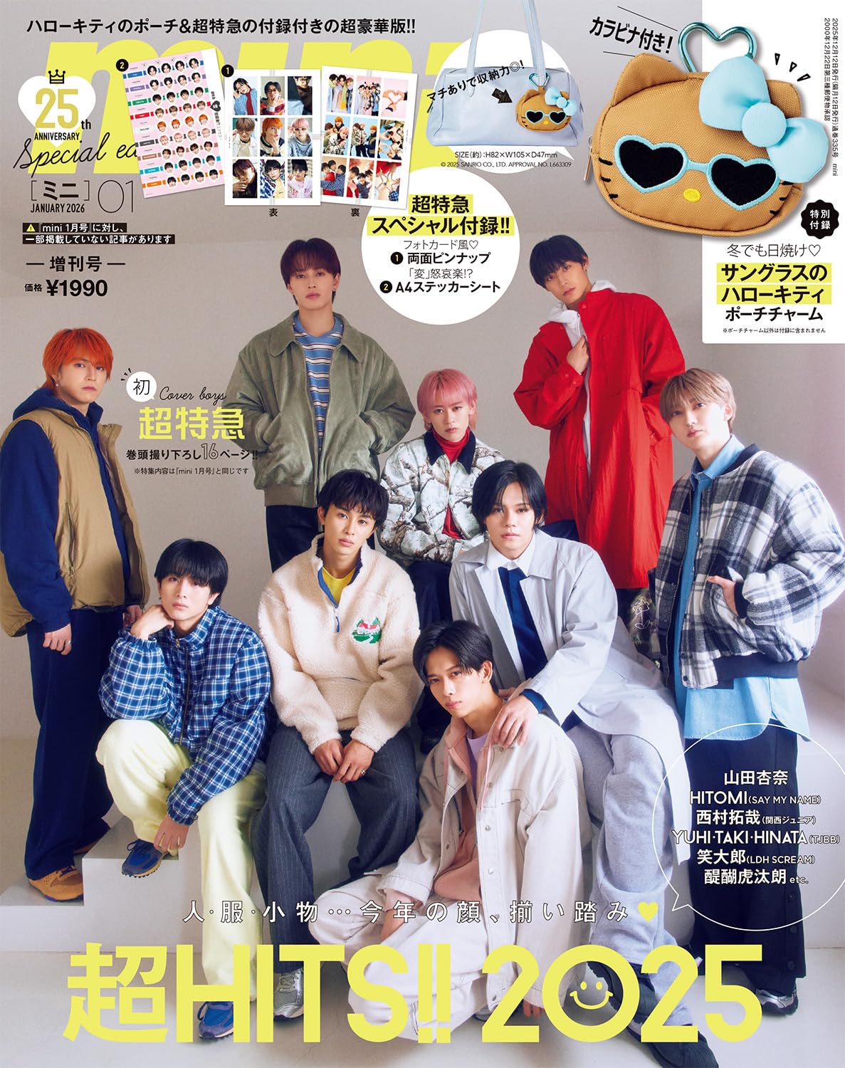 mini 2026年1月號增刊特別版 (封面:超特急) 附送 太陽眼鏡曬黑版 Hello Kitty 收納袋掛飾及超特急獨家附錄