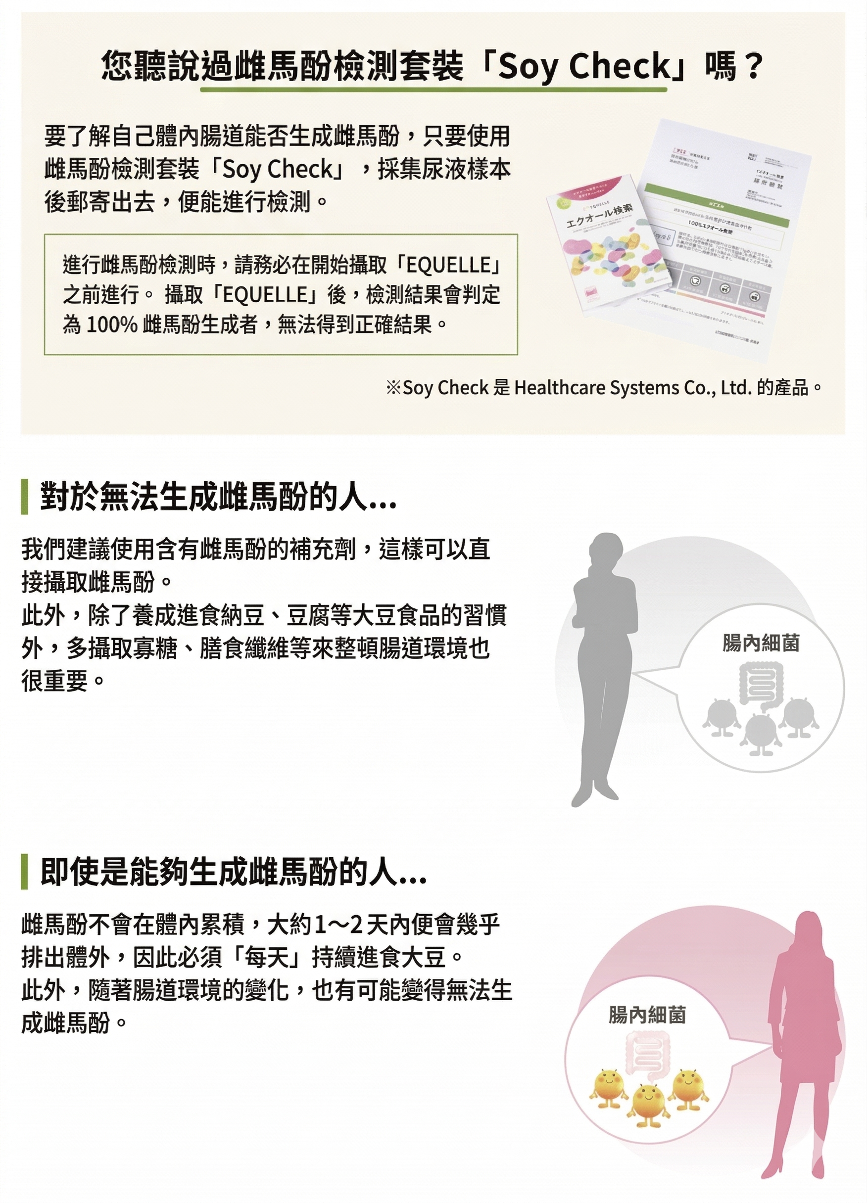 - 直接補充關鍵雌馬酚: 臨床研究指出,只有約 50% 的女性腸道內擁有能將大豆異黃酮轉化為雌馬酚的益菌。Equelle 讓不論體質的女性,都能直接、有效地攝取到這種有助舒緩更年期不適的關鍵營養素。