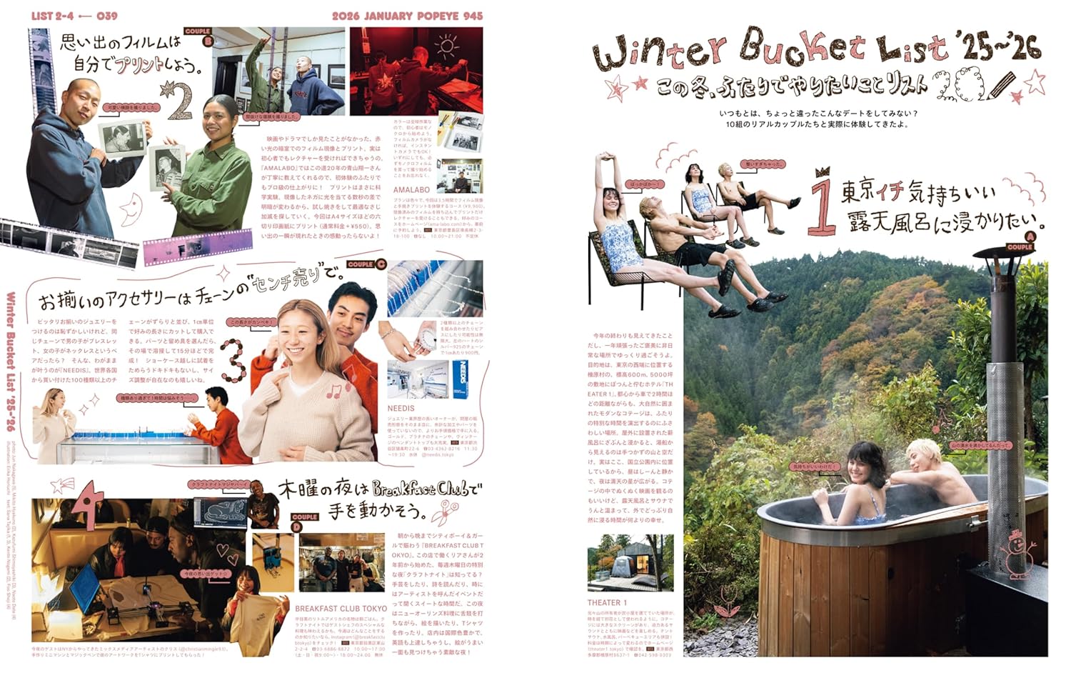 為情侶量身打造的「這個冬天想一起做的 20 件事」清單。透過 10 對真實情侶的親身體驗,提供從早到晚充滿新鮮感的浪漫約會提案。