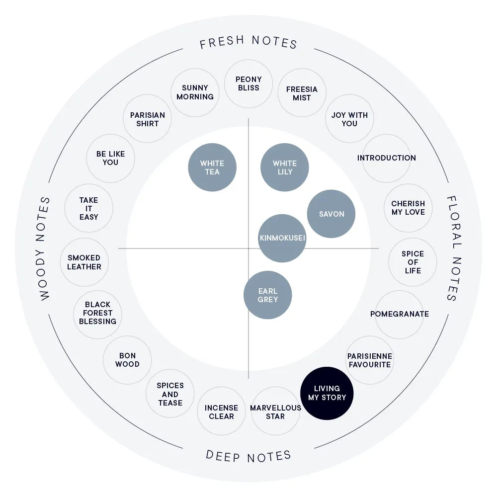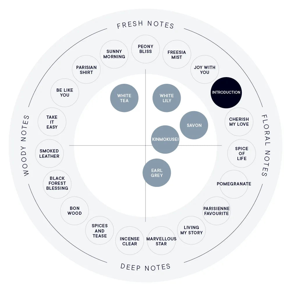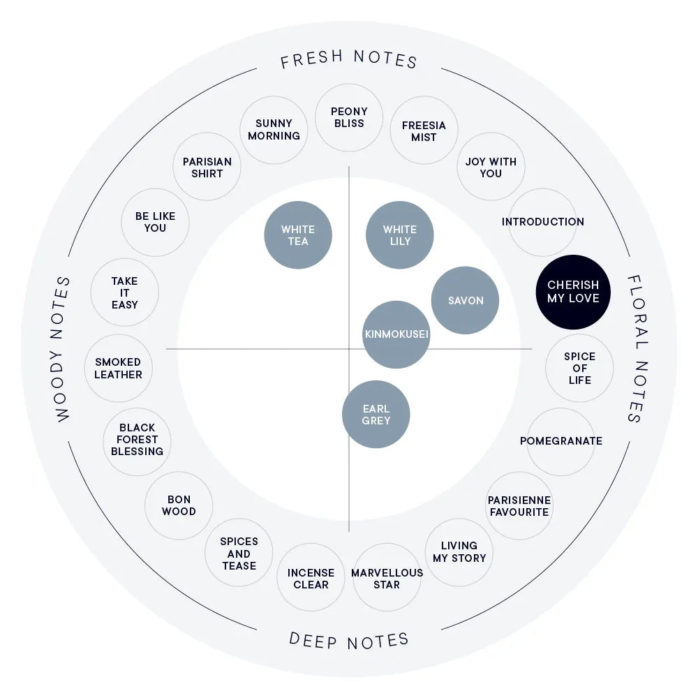 香味優雅而深沉,融合了茉莉、鳶尾和橙花的東方花香,並帶有淡淡的香草甜香。它完美契合那些偏愛濃郁香調而非清淡香調,或鍾情於甜美花香的人士。