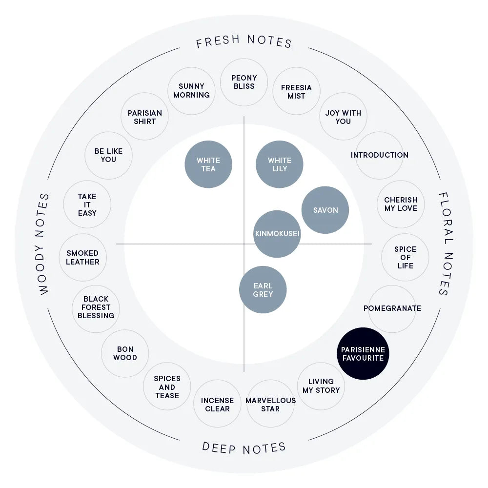 最受歡迎的香味,融合了蘋果和杏子的果香,以及清澈的綠意和優雅的玫瑰香。這款柔和清新的果香花香深受人們喜愛,彷彿置身於一家芬芳的花店。
